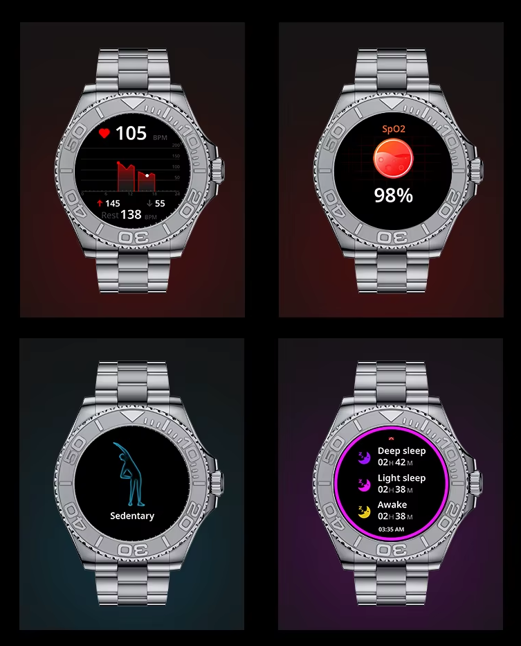 1. Wearable devices monitor human activities through electronic sensors. They are at the level of consumer electronics. It's normal to have certain deviations. The health test results of the watch are for reference only, and can not be compared with medical equipment. When the watch is placed on the surface of the object, there will be heart-rate/blood pressure and other test results. It is normal and not a product defect.