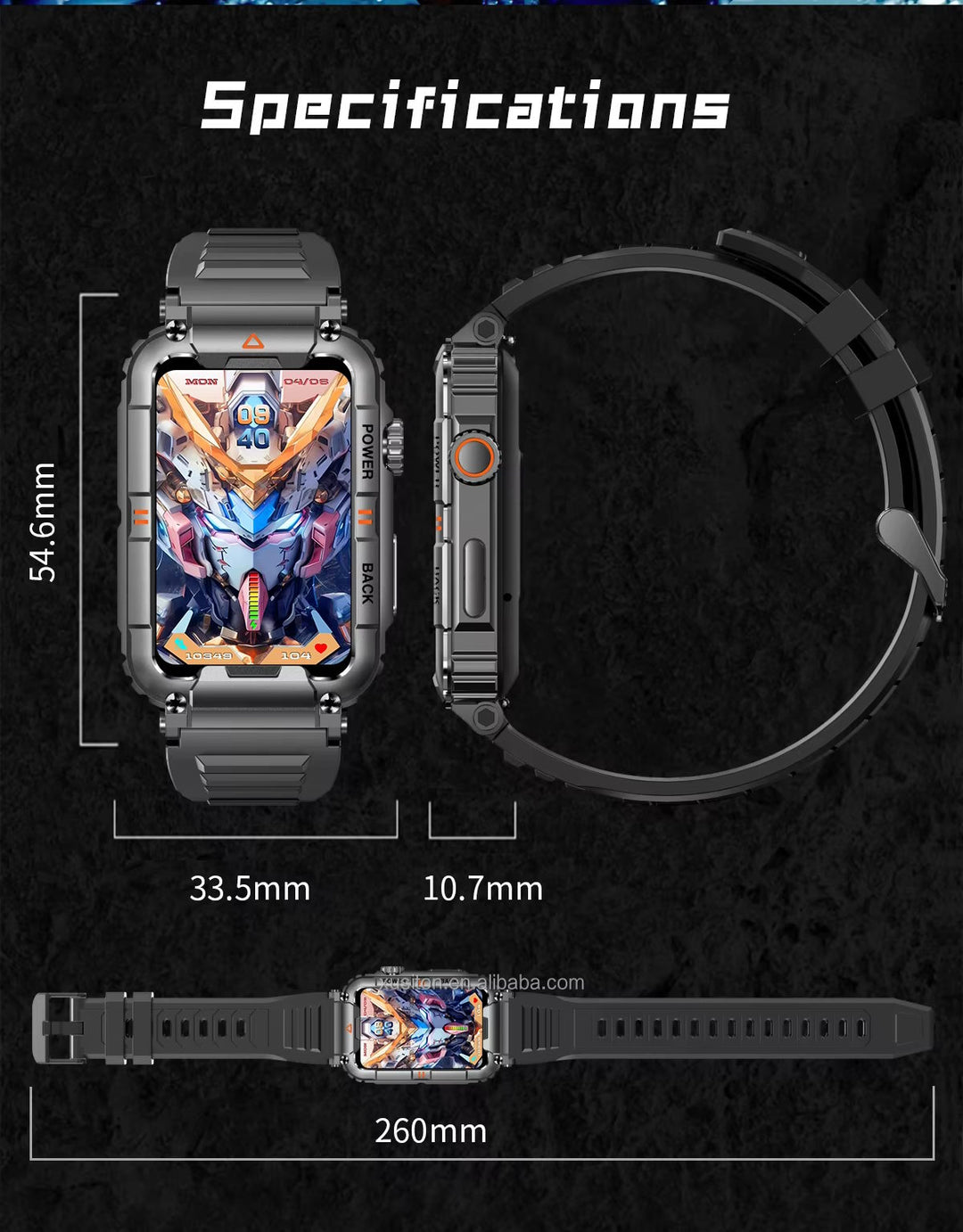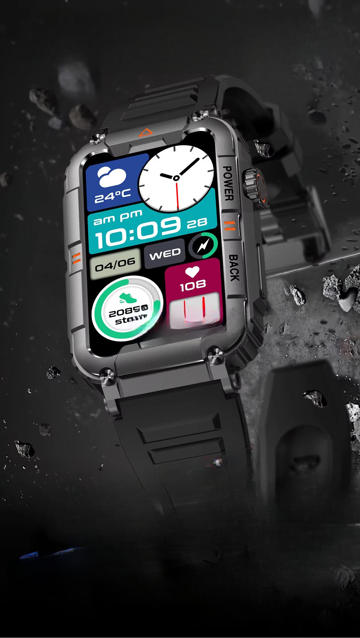 Meet the Neuclo Spectre Smartwatch, the ultimate fusion of toughness, style, and intelligence. Designed for those who demand durability and cutting-edge functionality, this rugged smartwatch is your perfect companion for conquering challenges, whether in the gym, the office, or the great outdoors. With its advanced AMOLED display, AI voice assistant, health monitoring, and customizable features, the Neuclo Spectre is more than a watch—it's your partner in achieving excellence.