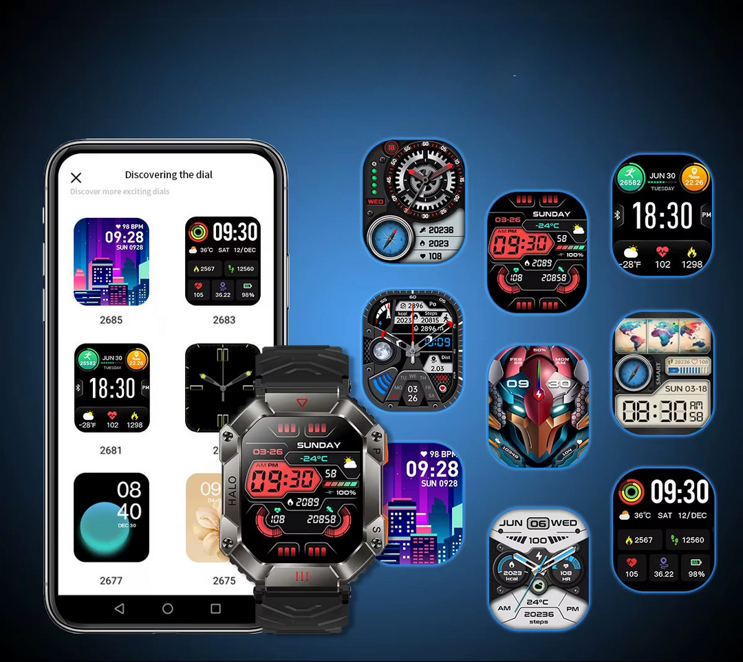 - Customizable & Stylish: Switch between 7 customizable watch faces and 8 unique menu styles to suit your mood and style.