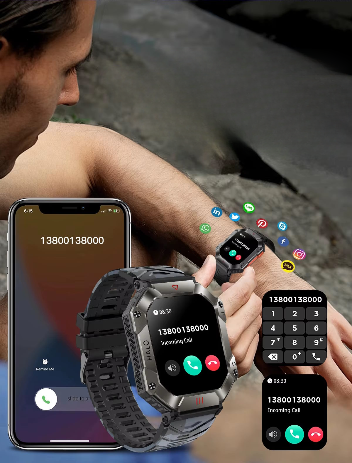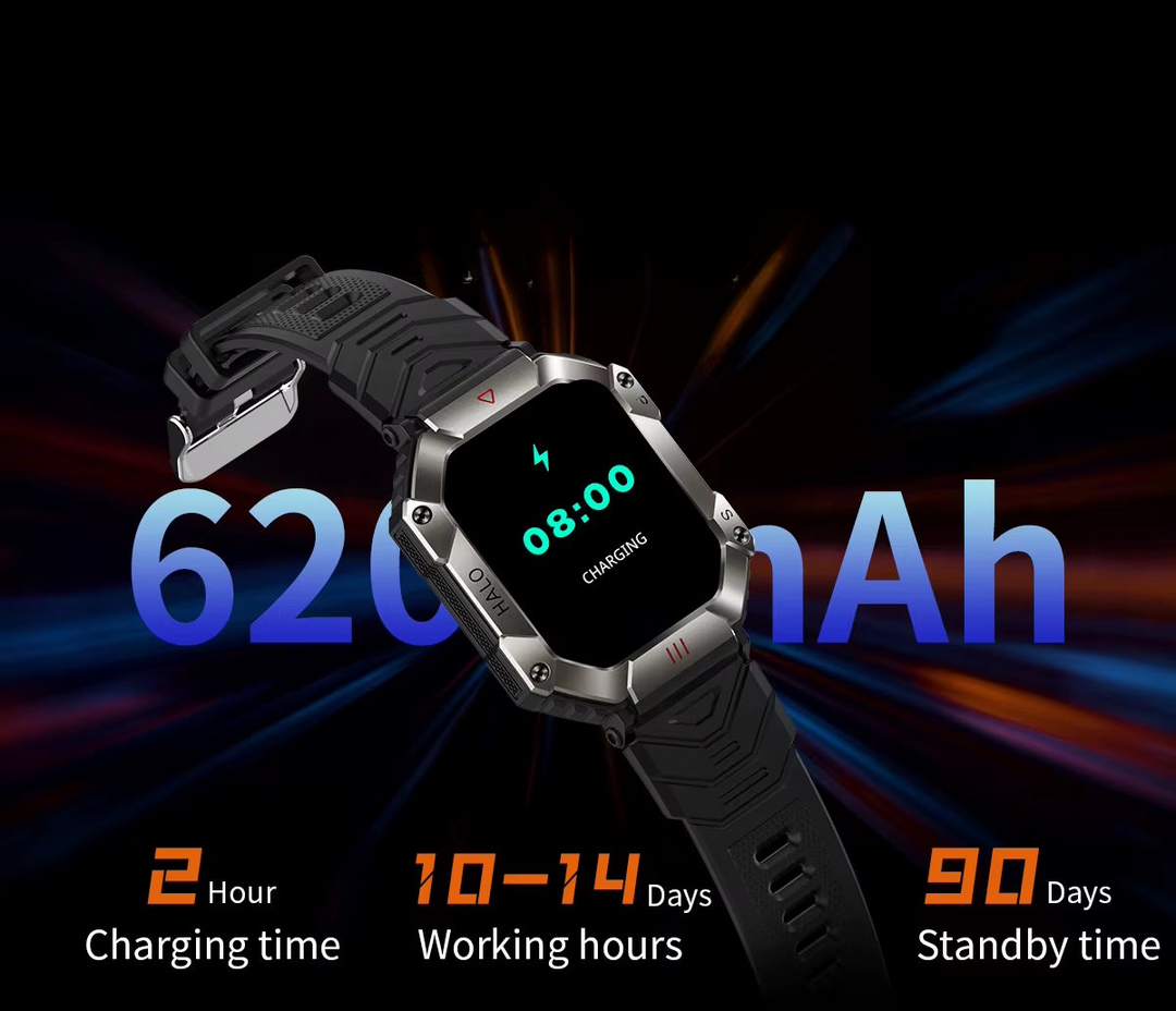The efficient battery management system ensures that even with heavy usage of features like heart rate monitoring, Bluetooth calls, and GPS-enabled sports tracking (via the app), the watch delivers long-lasting performance. Whether you're exploring the outdoors or managing daily tasks, the extended battery life keeps your smartwatch ready for action, whenever you are.